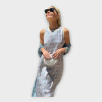 Vestido comprido com estampados lineares e fluidez