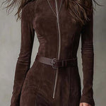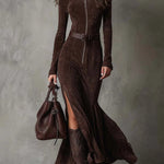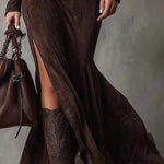 Vestido comprido de camurça sintética – Charme vintage, elegância moderna