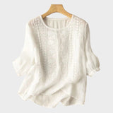 • Corte Elegante e Feminino - O design elegante com discretos detalhes bordados confere um toque luxuoso. Fácil de combinar com calças ou saia — perfeita para o dia a dia e para ocasiões especiais.