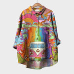 • Design único e artístico: O estampado floral vibrante transforma qualquer look simples num visual cheio de cor e personalidade.