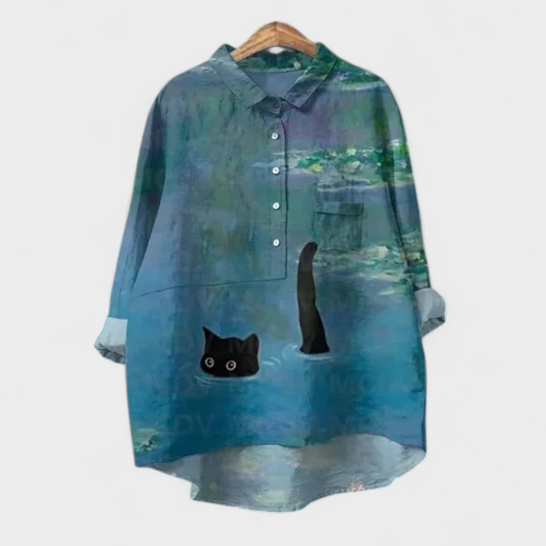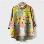 Essa camisa é perfeita para quem adora peças únicas e divertidas! Com estampa de um gatinho estiloso de óculos e bebida na mão, ela traz um toque irreverente e criativo ao visual. Ideal para composições casuais, combina com jeans, leggings ou shorts para um look leve e cheio de atitude.