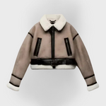 Blusão de couro cáqui versátil