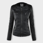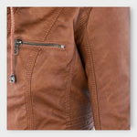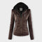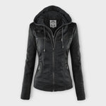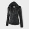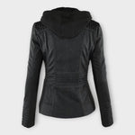 Casaco de cabedal moderno com capuz e linha intemporal