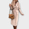 O cinto elegante permite acentuar a cintura e ajustar o corte conforme desejar.