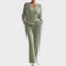 Com um design moderno em rede, o conjunto inclui um top de mangas longas com decote em V e calças de corte largo – a combinação perfeita de conforto e elegância para relaxar em casa ou para saídas casuais.
