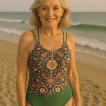 • Favorece a silhueta: Com a idade, o corpo transforma-se – e isso é natural. O desenho em mandala direciona subtilmente o olhar para o centro, criando uma silhueta favorecedora que a faz sentir-se confiante e confortável.