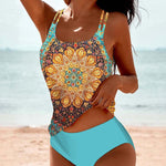 O modelo Erica foi pensado para mulheres que querem sentir-se elegantes e confortáveis, mesmo com uma barriguinha mais suave. O top solto e leve disfarça delicadamente a cintura e o abdómen, enquanto as cuecas garantem um ajuste perfeito sem apertar. A vibrante estampa mandala chama a atenção para cima e dá-lhe um visual fresco e cheio de energia.