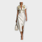 Um vestido que emana elegância e requinte intemporal, com detalhes requintados que realçam cada look. O seu design flexível torna-o ideal para todas as ocasiões, das mais casuais às mais formais, enquanto o seu ajuste confortável oferece praticidade e estilo. Com uma estética minimalista e um luxo discreto, é uma peça-chave para qualquer guarda-roupa.