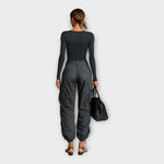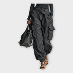 Uma calça cargo que combina praticidade e estética moderna, oferecendo conforto em todas as ocasiões. O seu design flexível adapta-se facilmente a diferentes estilos, oferecendo um equilíbrio entre um ajuste descontraído e elegância. Ideal para looks casuais, mas também mais sofisticados, é uma peça que não pode faltar no guarda-roupa moderno.