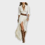 Vestido comprido com elegância boémia