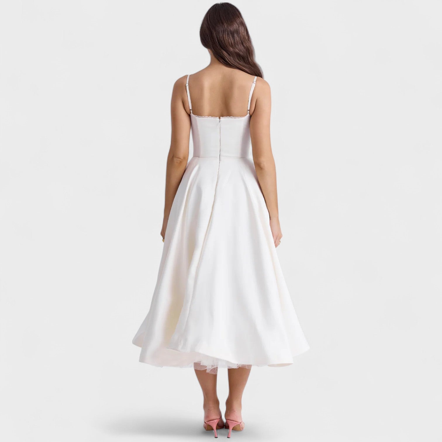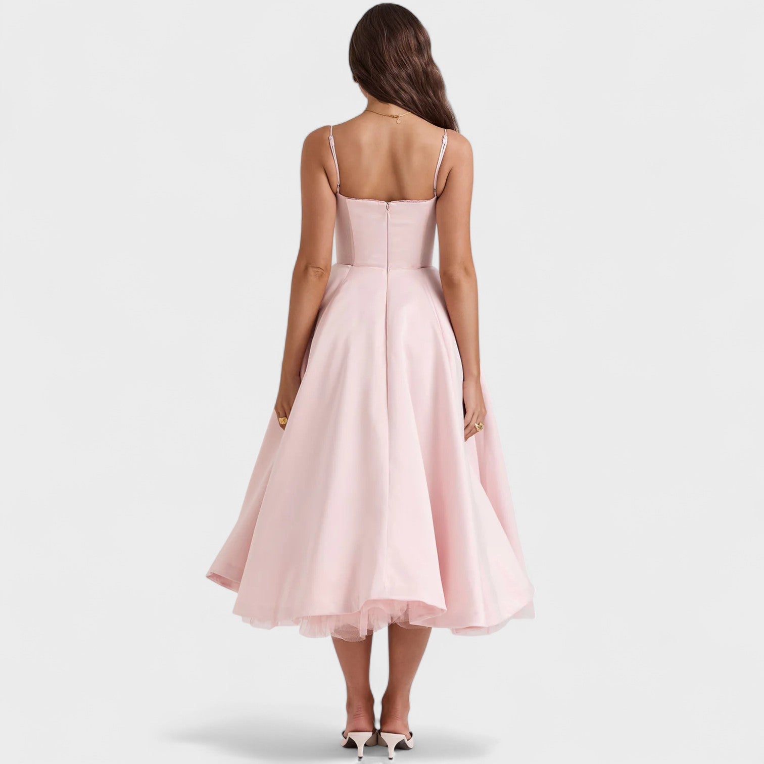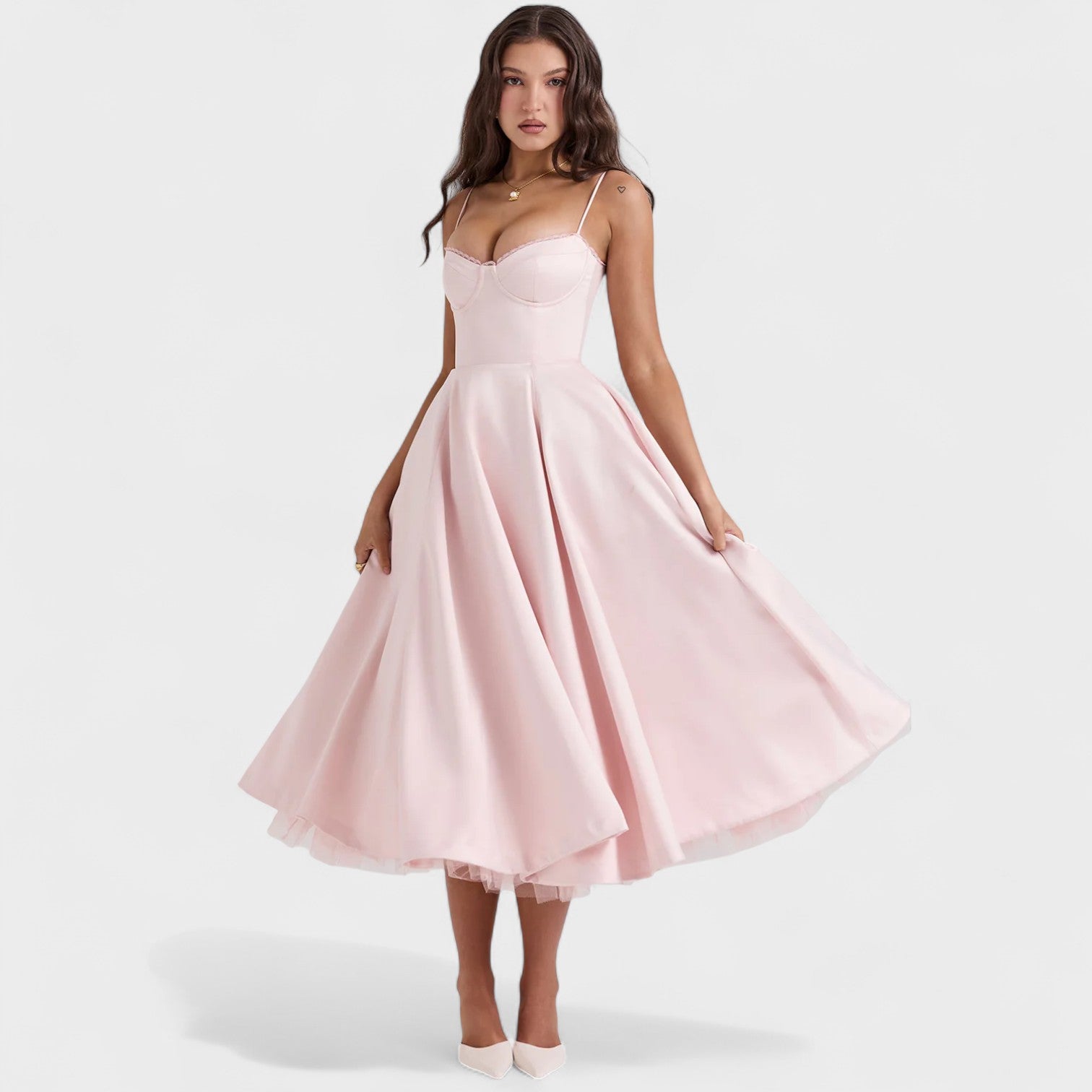 Envolva-se no charme irresistível deste vestido, feito para mulheres que amam destacar sua essência com classe. Com alças finas e um busto estruturado que valoriza a silhueta, ele combina a delicadeza da renda com a imponência de uma saia rodada de caimento impecável. Ideal para ocasiões especiais em que o glamour e a sofisticação são indispensáveis, este modelo é a escolha perfeita para quem deseja marcar presença com sutileza e atitude.