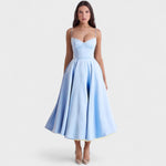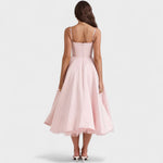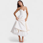 • Modelagem que valoriza a silhueta: corset estruturado e saia ampla que destacam a cintura e proporcionam um visual feminino e elegante.