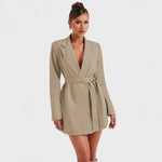 Quando o blazer vira vestido, o poder encontra a elegância.