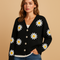 Conheça Marije, o colete tricotado que combina charme clássico e conforto moderno. Com um lindo padrão floral e um prático fecho de botões, é fácil de usar e combinar com qualquer look.