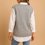Descubra Marit, o colete de malha sem mangas que combina charme clássico e conforto leve. Com um elegante padrão de tranças e um decote em V profundo, este colete é perfeito para sobrepor blusas, vestidos ou T-shirts.