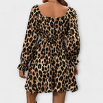 Cause uma boa impressão com este elegante vestido com um atraente estampado de leopardo, que combina um sofisticado decote quadrado com uma saia feminina em A.