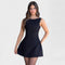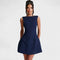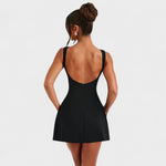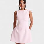 Este vestido curto une elegância e modernidade com um corte limpo e sofisticado. O design sem mangas e o decote discreto valorizam a silhueta de forma subtil, enquanto a estrutura do tecido oferece um caimento impecável.