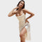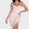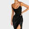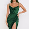 Este vestido de alças finas é a escolha perfeita para quem procura elegância com um toque sedutor. O decote drapeado confere leveza e sofisticação, enquanto a saia assimétrica com franzido lateral e abertura frontal valoriza as curvas e dá movimento à silhueta.