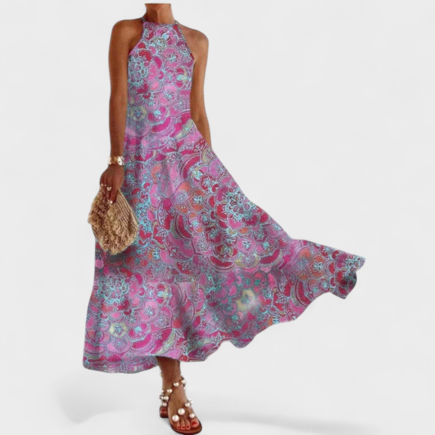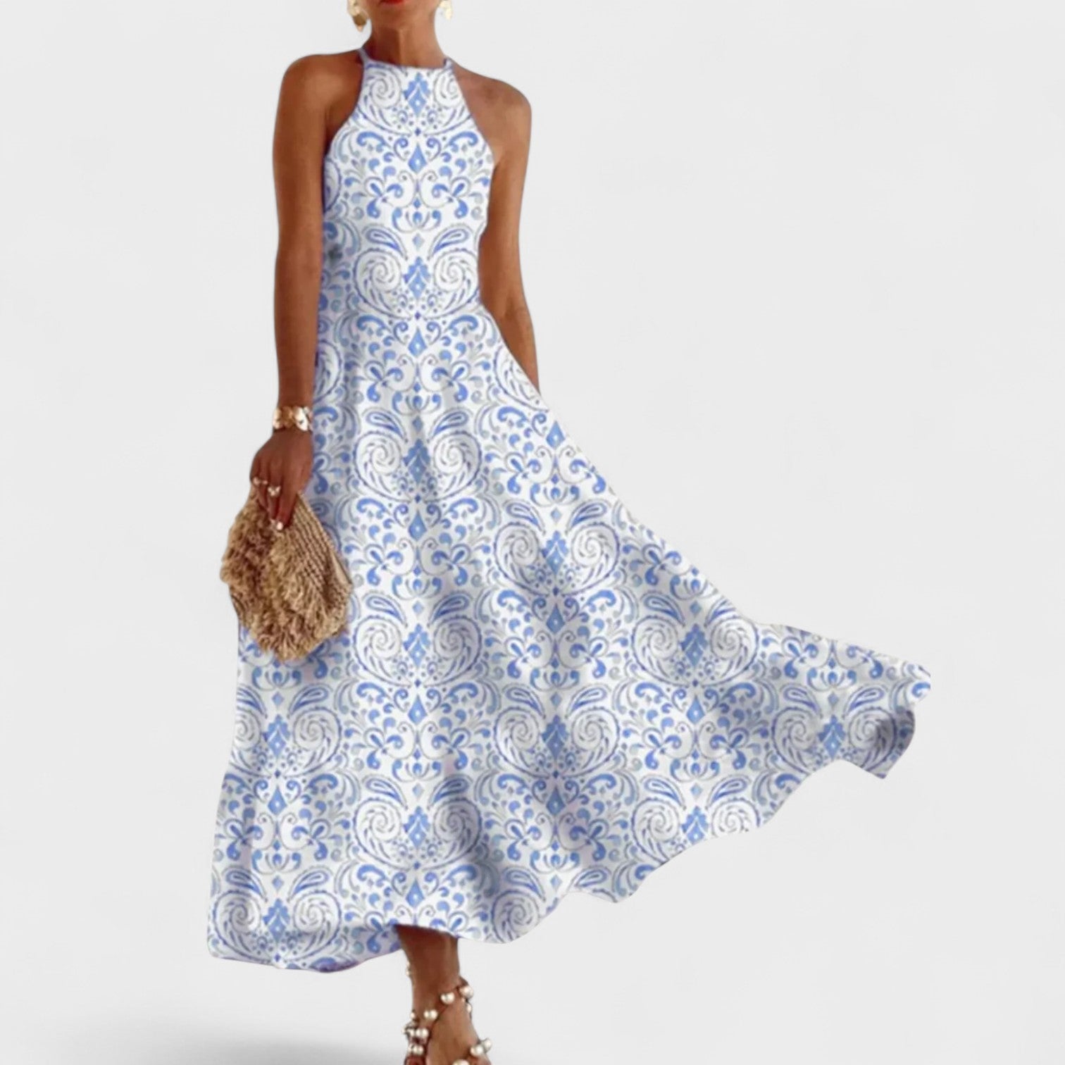 Este vestido longo com padrão ornamental é a definição de elegância descontraída. Com um corte fluido e alças que realçam os ombros, proporciona um caimento leve e sofisticado. A escolha perfeita para passeios, férias ou eventos ao ar livre, onde o conforto e o bom gosto andam de mãos dadas.