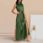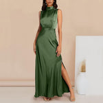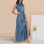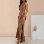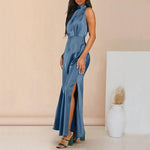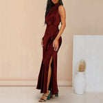 Este vestido de seda feminino é cuidadosamente confeccionado com materiais premium, garantindo conforto duradouro e respirabilidade. Com um sofisticado decote halter e disponível em cores sólidas, este vestido longo exala charme atemporal e versatilidade. O design sem mangas e a silhueta ajustada e elegante oferecem estilo e praticidade para qualquer ocasião. Sinta o conforto e a sofisticação com Mariana, que conta com uma fenda lateral, adicionando um toque de charme e movimento gracioso ao seu look.
