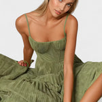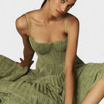 Descubra o equilíbrio perfeito entre sofisticação e leveza com este vestido midi plissado em verde-oliva. Inspirado na fluidez dos movimentos femininos, o fato de ter alças finas e corpete ajustado realça a silhueta, enquanto as pregas delicadas conferem um encanto etéreo a cada volta. Ideal para ocasiões especiais ou para elevar o seu dia a dia, este vestido acompanha-o com graça e personalidade onde quer que vá.