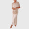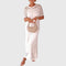• Ajuste leve em camadas: Desliza suavemente sobre a barriga e os quadris, criando uma silhueta respirável que valoriza sem marcar.