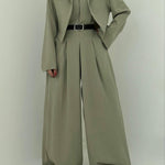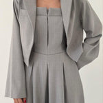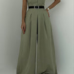 Com umas calças pantalonas ultramodernas, um bustiê estruturado e um casaco fluído a condizer, foi criado para realçar qualquer silhueta.