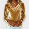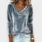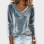 Luxuosa T-Shirt de Manga Comprida em Veludo com Elegante Gola Cascata