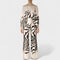 O conjunto Luisa é uma explosão de estilo e atitude. Com estampa ondulada em tons vibrantes de pink, laranja e vermelho sobre fundo off-white, ele combina modelagem fluida com um toque glam. A blusa de um ombro só com mangas amplas traz movimento, enquanto a calça flare alonga a silhueta — perfeito para quem quer presença marcante com conforto e sofisticação.