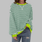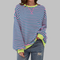 Lara - Sweatshirt casual às riscas de manga comprida e gola redonda