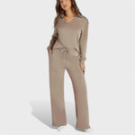 Imagina combinar com uma suave Suéter com Decote em V combinada com calças de cintura elástica que não só realçam a tua figura, mas também te mantêm relaxada durante todo o dia.
